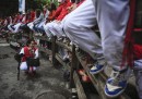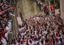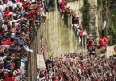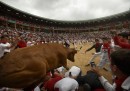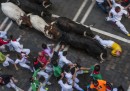 A Pamplona, nel nord della Spagna, vanno avanti da domenica 6 luglio le celebrazioni della festa di San Firmino, uno degli eventi più suggestivi e noti anche fuori dalla Spagna, specialmente per la grande popolarità ottenuta dopo la pubblicazione del romanzo di Ernest Hemingway Fiesta, ambientato proprio a Pamplona. La parte più conosciuta di questa festa si svolge ogni mattina dal 7 al 14 luglio ed è il cosiddetto ‘“Encierro” (“chiusura”), e cioè quella parte con i tori e la gente che gli corre davanti, lungo percorsi affollatissimi, recintati e alquanto stretti, che conducono all’arena dove poi si svolge la corrida: quasi ogni anno – anche stavolta – ci scappa l’incidente, e qualcuno resta travolto dai tori in corsa riportando contusioni, traumi o ferite ancora più gravi.