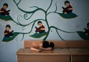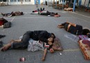 Le foto degli ultimi giorni mostrano, oltre alle tristemente consuete immagini di bombardamenti e razzi, famiglie di palestinesi che ispezionano gli edifici in macerie, che cercano di recuperare qualcosa, che fuggono – spesso a piedi – dalle loro case e che cercano aiuto nelle scuole gestite dalle Nazioni Unite, convertite in centri di assistenza. Dall’altra parte ci sono i soldati israeliani che dormono vicino ai carri armati, persone in spiaggia a Tel Aviv che cercano di ripararsi mentre suona l’allarme anti-razzi, e le centinaia di volantini lanciati dall’esercito sul cielo di Gaza.