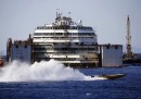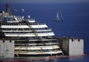 La Costa Concordia da tempo galleggia grazie a una serie di trenta cassoni che nei mesi scorsi sono stati applicati lungo i suoi fianchi: i cassoni, alti fino a 33 metri, prima di queste operazioni erano pieni di acqua, che faceva da zavorra per mantenere ferma e stabile la nave sul fondale. Vuotando i cassoni attraverso il pompaggio di aria compressa, la struttura è diventata più leggera e ha permesso alla nave di iniziare a galleggiare. Spiega il Tirreno che «Costa Crociere continua a ripetere che – condizioni meteo permettendo – la partenza del relitto per lunedì “resta un obiettivo”». La Costa Concordia sarà trainata da due navi e seguita da un convoglio di altri otto mezzi navali. Dopo che la nave verrà trasportata fuori dal Giglio, però, i complicati lavori per sistemare il fondale dell’isola proseguiranno per circa un anno e mezzo, come racconta Jennifer Meletti su Repubblica.