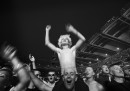 Per questo motivo Feinberg decise di “girare” la sua macchina fotografica non più verso il palco e gli artisti ma verso il pubblico, che costituisce una specie di “spettacolo dentro lo spettacolo”: mentre si è circondati da estranei la musica riesce ad unire tutti e a rendere un semplice concerto un’esperienza condivisa incredibilmente potente. Le foto raccolte in Diehards riflettono e restituiscono benissimo quell’insieme di gioia, entusiasmo, fatica e alienazione che è assistere a un concerto dal vivo.