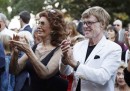 Questa settimana è iniziato il Comic-Con di San Diego, in California, la convention annuale più grande degli Stati Uniti dedicata a un po’ di tutto: il mondo delle arti, del cinema e dei fumetti. Tra le persone che hanno partecipato alle presentazioni e agli eventi del festival finora ci sono stati Megan Fox, Will Arnett, Jim Parsons e il regista Christopher Nolan con Matthew McConaughey (che questa settimana si è visto anche in compagnia di Bryan Cranston alla cerimonia dei Television Critics Association Awards). Altra presentazione molto affollata è stata quella di “Get On Up”, a New York, il film biografico sulla storia del cantante James Brown: tra gli altri c’erano Mick Jagger (produttore del film) e Tomi Rae Brown, compagna di James Brown fino al 2004, che ha mostrato un vistoso tatuaggio dedicato al musicista, morto nel 2006.