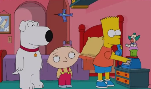 L’idea di mettere insieme le due famiglie dei cartoni animati più conosciute di FOX circolava da tempo ed era stata anticipata, ufficiosamente, già nell’estate del 2013. Tra le due serie c’è sempre stata una certa rivalità, sentita più che altro dai rispettivi fan – a cominciare da quelli dei Simpson che hanno spesso accusato Seth McFarlane, il creatore di “Family Guy”, di averli copiati per creare i suoi personaggi. Su questa rivalità si gioca molto, nelle immagini del trailer, che mostrano anche Cleveland di “The Cleveland Show”, e Bob di “Bob’s Burgers”