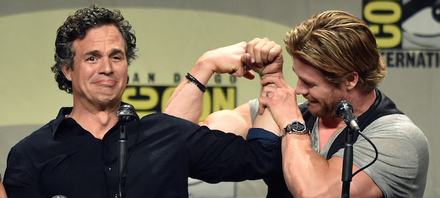 La persona che più di tutte meritava di essere fotografata questa settimana è senz’altro Mark Ruffalo: nonostante sia famoso, talentuoso e con un meritato giro di ammiratori, fa la stessa faccia che faremmo noi confrontando i nostri muscoli a quelli di Chris Hemsworth, l’attore australiano che ha fatto Thor. A ricordarci che ci sono celebrità più celebrità degli altri.