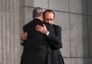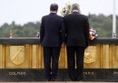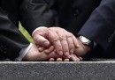 Una delle cerimonie più toccanti si è svolta domenica sulla collina di Hartmannswillerkopf/Vieil-Armand, nell’Alsazia francese, tra le zone più combattute e cruente della guerra, in cui si affrontarono a lungo e morirono 30 mila soldati francesi e tedeschi. Per farsi un’idea, dal dicembre 1914 al dicembre 1915 la collina cambiò bandiera nove volte. Alla cerimonia hanno partecipato il presidente François Hollande e quello tedesco Joachim Gauck, che sono rimasti in silenzio tenendosi per mano e poi si sono abbracciati a lungo. Hanno anche deposto insieme la prima pietra di un museo franco-tedesco dedicato al conflitto; era la prima volta che un presidente tedesco visitava il cimitero, in cui sono sepolti 1.256 soldati francesi. Durante il suo discorso, Hollande ha detto che entrambi i suoi nonni hanno combattuto nella guerra e Gauck ha aggiunto che «i nostri nonni combatterono l’uno contro l’altro».