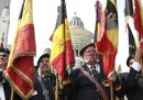 Il presidente francese e quello tedesco che si tengono per mano, corone di fiori deposte a Liegi e soldati in costume tra i papaveri