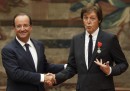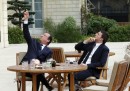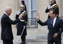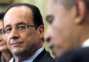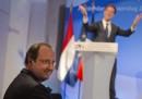 C’è anche un altro aspetto, che sicuramente non aiuta: Hollande è uno che viene male in foto, o magari di cui circolano parecchie foto in cui è venuto male. Una volta venne con un’espressione talmente ridicola che l’agenzia AFP decise addirittura di ritirare quella fotografia. Un’altra volta, a completare di dettagli la sua immagine evidentemente condivisa di omino goffo in mezzo ai potenti, un quotidiano olandese pubblicò una raccolta di fotografie in cui tendeva la mano a ospiti e presidenti, e quelli guardavano altrove. Poi, a sorpresa, finì sui giornali che non si occupano di politica per una relazione adulterina che avrebbe potuto effettivamente rappresentare quantomeno una svolta nella sua immagine di leader anonimo, e che invece non lasciò tracce. La domanda spontanea, scorrendo tutte le sue foto, resta quella: chi è quell’omino nella foto tra i leader del mondo?