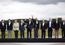 Oltre che il presidente della Repubblica francese, uno dei leader del G8, e per anni segretario del Partito Socialista francese, François Hollande – che compie oggi 60 anni – è il prototipo del leader che – forse per un insieme di motivi sia politici che estetici – fatica a emergere nelle numerosissime foto che lo ritraggono insieme ad altri grandi capi del mondo, tra cui alcuni che sembrano più grandi di lui sebbene governino nazioni meno grandi della Francia, in tutti i sensi. Visto in foto da qui, e anche senza il condizionamento della sua crescente impopolarità in Francia, viene molto più facile immaginarlo come una specie di impiegato finito lì per caso, piuttosto che uno dei presidenti impegnato in videoconferenza con Obama e Merkel per decidere sulle sanzioni contro la Russia, per esempio.