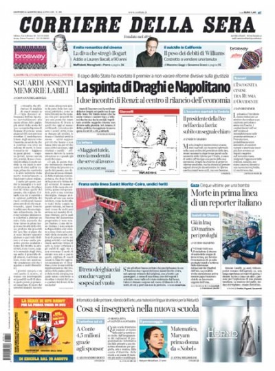 Le prime pagine di giovedì 14 agosto 2014