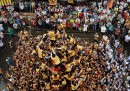 Lunedì pomeriggio una persona è morta e quasi 300 sono rimaste ferite – tra cui 29 gravemente – nei festeggiamenti di Janmashtami, una sorta di Natale indù che celebra la nascita del dio Krishna. Gli incidenti sono avvenuti durante la realizzazione dei dahi handi, le piramidi umane costruite dai fedeli per raggiungere e rompere una brocca di terracotta ripiena di latte cagliato e monetine, che ricorda un episodio della vita del dio, quando da bambino rubò un recipiente pieno di burro. La polizia ha precisato che l’uomo è morto di infarto, che era presente ai festeggiamenti ma non aveva partecipato ai dahi handi.