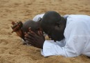 John Moore, un apprezzato fotografo di Getty Images, si trova in Liberia, da dove sta documentando la vita di tutti i giorni durante la peggiore epidemia di ebola della storia, che ha ucciso finora oltre 1.200 persone. Tra le tante cose che John Moore ha fotografato, ci sono anche le preghiere in riva all’Oceano Atlantico di alcuni appartenenti alla Chiesa di Aladura, una delle chiese indipendenti africane, comunità cristiane fondate dagli africani e indipendenti dalle organizzazioni missionarie. I fedeli hanno spiegato che stavano chiedendo a Dio di liberare il paese dall’epidemia.