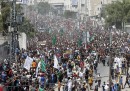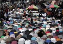 Le foto delle decine di migliaia di persone in strada a Rafah per celebrare i capi delle brigate Al-Qassam uccisi da un bombardamento israeliano