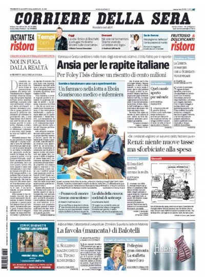 Ancora lo Stato Islamico e i sequestri, ma ci sono anche Renzi e Balotelli nei titoli dei giornali