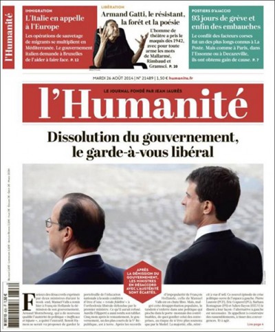 Lunedì 25 agosto, la Presidenza della Repubblica francese ha annunciato con un breve comunicato le dimissioni del governo presieduto da Manuel Valls. Oggi sarà nominato un nuovo governo più coerente «con le linee guida che il paese si è prefissato». La notizia delle dimissioni è arrivata dopo un incontro di un’ora tra il primo ministro Valls e il presidente della Repubblica Hollande, e sulla decisione ci sarebbe stato tra i due un «consenso assoluto». Oggi, le prime pagine dei giornali francesi sono naturalmente dedicate alla crisi di governo, che riguarda non solo l’esecutivo ma lo stesso Presidente della Repubblica. Il quotidiano di sinistra Libération e quello di destra Le Figaro hanno scelto lo stesso titolo (“Crise de régime”): e anche questo fa parte della storia.