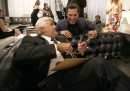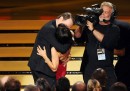Durante la serata – il consueto spettacolone americano in questo genere di eventi – si è scherzato molto sul fatto che fosse un giorno lavorativo (di solito la cerimonia degli Emmy si tiene la domenica), ci sono stati baci tra ex colleghi, discorsi molto appassionati da parte del cast di Breaking Bad e corse a piedi nudi. Èd è stato ricordato Robin Williams, morto l’11 agosto.