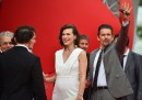 Ethan Hawke e Milla Jovovich, grandi abiti da sera, un bambino, e un catenone al collo