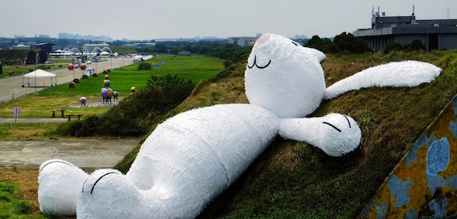 Contemporaneamente, nella prima metà di settembre, si apriranno a Taiwan e in Inghilterra due delle più importanti mostre internazionali dedicate alla “Land Art”: il Taoyuan Land Art Festival, a Dayuan, Taiwan, dal 9 al 14 settembre, e la mostra “Beyond Limits”, dall’8 settembre al 23 ottobre, a Chatsworth, in Inghilterra. Alcune delle immagini relative alle due esposizioni sono già state diffuse nei giorni scorsi: in particolare sono molto circolate quelle dell’installazione dell’artista olandese Florentijn Hofman – quello della papera di gomma gigante – al Taoyuan Land Art Festival, che riproduce un gigantesco coniglio, costruito con materiali di plastica e legno, sdraiato su un terrapieno.
