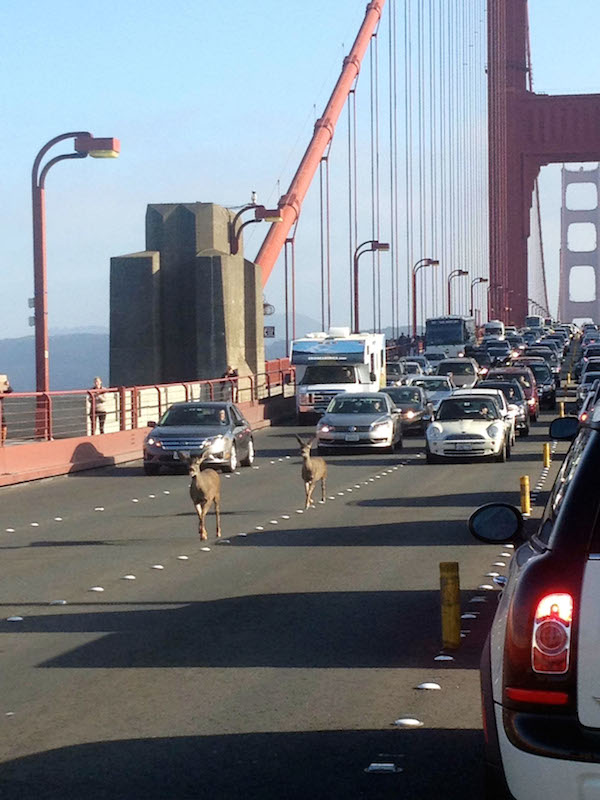 I due cervi che hanno bloccato il traffico sul Golden Gate a San Francisco