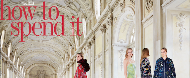 How to Spend it è una rivista mensile del Financial Times che si occupa di lusso, moda, arredo, cibo, arte, collezionismo, viaggi, e beni di cosiddetta “fascia alta” (dagli yacht agli orologi alle automobili). Dal settembre 2014 ne uscirà la versione italiana insieme al Sole 24 Ore, sia in versione cartacea, sia in versione digitale per tablet e pc. La rivista è diretta da Nicoletta Polla-Mattiot, e proporrà contenuti originali prodotti dal Sole 24 Ore e contenuti tradotti dall’edizione inglese. Il primo numero esce oggi e comprende interviste a Giorgio Armani, Giovanni Gastel e Margaret Mazzantini.
