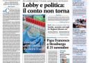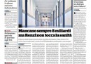 La protesta delle Regioni contro i tagli richiesti nella sanità dal governo, che in serata ha leggermente rivisto la prima richiesta, e il richiamo sui conti dell’Italia da parte della Banca Centrale Europea, preoccupata che l’Italia non raggiunga gli obiettivi fissati per la riduzione del deficit, sono le notizie in apertura su quasi tutti i quotidiani di oggi, mentre il Corriere della Sera si occupa invece dell’indagine sulle tangenti all’ENI che riguarda i vertici della società.