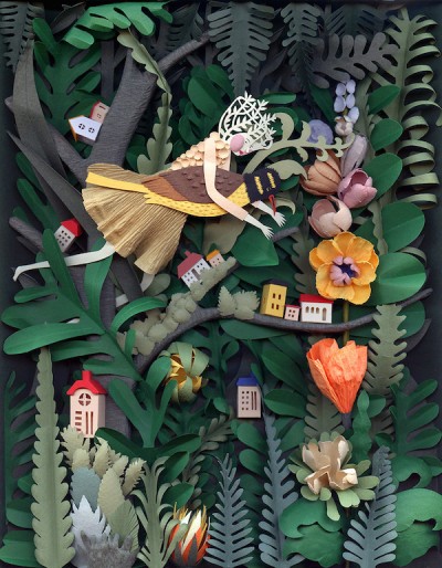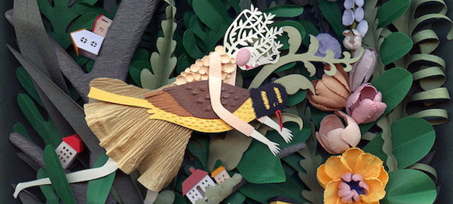 Elsa Mora è un’artista multimediale ed ex insegnate d’arte nata a Cuba, che nel 2001 si è trasferita a Los Angeles, dove realizza opere che vanno dalla pittura all’illustrazione, dalla scultura al design di gioielli. Tra le moltissime cose, Mora realizza delle sculture di carta tridimensionali (paper-cuts) molto dettagliate, per cui trae ispirazione dalle sue esperienze personali. Ha iniziato a dedicarsi a questo genere di lavori mentre si prendeva cura di suo figlio, affetto da autismo: e poi ha scoperto che realizzare questi lavori così incredibilmente precisi richiedeva una pazienza e una dedizione che non riusciva a trovare altrove. Gli altri lavori di Elsa Mora si possono vedere sul suo sito e sulla sua pagina di Facebook.