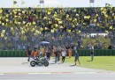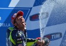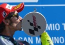 Valentino Rossi ha vinto il Gran Premio di San Marino della MotoGP, che si è corso domenica 14 sul circuito di Misano Adriatico, in provincia di Rimini. Rossi ha ottenuto la sua prima vittoria in stagione, nonché una delle poche degli ultimi tempi: l’altra unica vittoria degli ultimi quattro anni era stata quella al GP d’Olanda il 29 giugno 2013. In questa stagione – in gran parte dominata dal campione del mondo in carica, lo spagnolo Marc Márquez – Rossi è attualmente terzo nella classifica generale di MotoGP, con 214 punti: davanti ha Daniel Pedrosa a 215 e Marc Márquez, appunto, che finora ha vinto 11 gare e ha 289 punti. Rossi è anche il primo pilota della storia ad avere ottenuto più di 5 mila punti da professionista (per ora ne ha 5012).