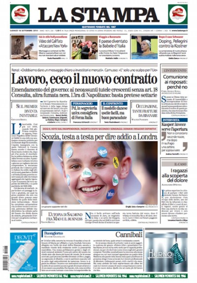 Le prime pagine di giovedì 18 settembre 2014