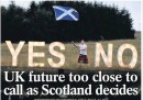 Il referendum sull'indipendenza della Scozia sui quotidiani britannici, tra bandierone, citazioni, titoli struggenti e Robert Burns
