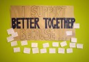 Immagini di una settimana come nessun'altra, da quelle parti: adesivi, cartelli, spille, striscioni e sorrisi