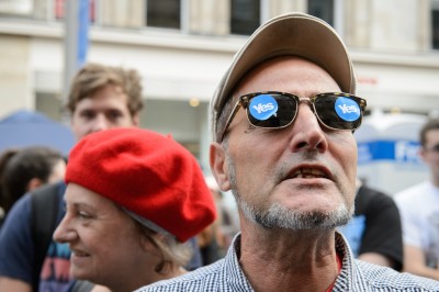 Immagini di una settimana come nessun'altra, da quelle parti: adesivi, cartelli, spille, striscioni e sorrisi