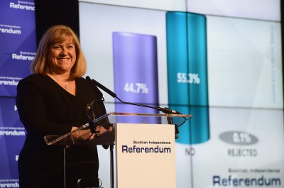 In Scozia il referendum sull’indipendenza è stato vinto dai No: la Scozia continuerà quindi a fare parte del Regno Unito. Ha votato No alla divisione il 55,30 per cento degli scozzesi che hanno votato, mentre il restante 44,70 per cento ha votato a favore dell’indipendenza. Il risultato è stato annunciato venerdì 19 settembre, dopo un lungo scrutinio iniziato poco dopo la mezzanotte e proseguito nelle prime ore della mattina. Hanno partecipato al referendum circa 4,3 milioni di persone, facendo registrare una delle affluenze più alte nella storia elettorale recente della Scozia, a conferma di quanto il tema fosse sentito dalla popolazione. La percentuale finale dell’affluenza è stata dell’84,59 per cento.