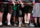 Le foto del primo giorno della grande festa a Monaco di Baviera, tra boccali di birra, abiti tradizionali e gente allegra (anche troppo)