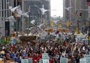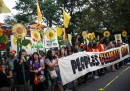 A New York alle 11.30 ora locale (erano le 17.30 in Italia) è cominciata la People’s Climate March, una grande manifestazione a difesa dell’ambiente a cui stanno partecipando migliaia di persone. La protesta, che critica soprattutto la mancanza di risultati a livello mondiale relativi alla limitazione delle emissioni di carbonio, è stata organizzata in vista dell’incontro delle Nazioni Unite sul clima che si terrà a New York martedì 23 settembre. L’incontro, a cui parteciperà anche il presidente Barack Obama, dovrebbe stabilire un quadro generale per un successivo accordo sulle emissioni di carbonio nel mondo.