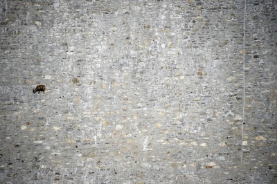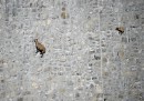 Olivier Morin ha fotografato per Agence France Presse un gruppo di stambecchi delle Alpi mentre si arrampicano a circa 2.200 metri di altezza sulla diga del lago di Cingino, che si trova non lontano da Antronapiana, in Piemonte. Gli stambecchi riescono a camminare su pareti estremamente inclinate, anche fino a 80 gradi. La diga viene chiamata anche “palestra degli stambecchi” per la frequenza con cui gli animali vengono avvistati sulle sue pareti in cerca del salnitro che proviene dal cemento, e da cui ricavano il sale necessario per la loro alimentazione.