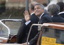 L’attore statunitense George Clooney e la sua compagna Amal Alamuddin si sono sposati sabato sera in una “cerimonia privata” all’hotel Aman, nel Palazzo Papadopoli sul Canal Grande, a Venezia. Tra gli ospiti delle nozze, le cui foto erano cominciate a circolare già nel pomeriggio di sabato, c’erano attori e celebrità come Bill Murray, Matt Damon, Bono Vox e Cindy Crawford. Secondo quanto riferito dai giornali che se ne stanno occupando, Clooney e Alamuddin dovrebbero sposarsi ufficialmente – con il rito civile – lunedì prossimo, in comune di Venezia.