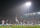 Sabato si sono giocate due partite di Serie A: Roma-Verona è finita 2-0, Atalanta-Juventus 0-3. Roma e Juventus sono le due squadre prime in classifica, con 15 punti, dopo aver vinto tutte le prime cinque partite giocate nel più importante campionato di calcio italiano. La Juventus ha battuto l’Atalanta grazie a due gol segnati dall’attaccante argentino Carlos Tévez – che in questo campionato ne ha già segnati quattro – e grazie al primo gol del giovane attaccante spagnolo Álvaro Morata con la maglia della Juventus (Morata prima giocava nel Real Madrid, è stato acquistato dalla Juventus per 20 milioni di euro). Al 59esimo minuto, quando il risultato era 1-0 per la Juventus, il portiere della Juventus Gianluigi Buffon ha parato un rigore all’attaccante dell’Atalanta Germán Denis.