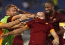 La Roma è riuscita a vincere con due gol segnati negli ultimi 15 minuti della partita, dopo un primo tempo piuttosto complicato a causa del gioco difensivo del Verona. Il primo lo ha segnato il centrocampista Alessandro Florenzi, entrato in campo da otto minuti al posto di Francesco Totti. Poi, all’86esimo, l’attaccante Mattia Destro ha segnato il secondo gol, notevole: vedendo il portiere avversario fuori dalla propria area di porta, Destro ha calciato il pallone da centrocampo con grande potenza, che ha scavalcato il portiere ed è entrato in porta.