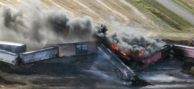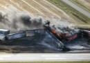 Martedì mattina un treno merci delle ferrovie nazionali canadesi è deragliato a circa 20 chilometri a ovest di Wadena, nella provincia canadese di Saskatchewan. Sul treno si trovavano due impiegati delle ferrovie, che non sono rimasti feriti nell’incidente. Il convoglio era composto da cento carrozze, e ne sono deragliate 26: alcune trasportavano sostanze tossiche, tra cui derivati del petrolio, acido cloridrico e soda caustica, che hanno preso fuoco. L’incendio è proseguito per tutto il pomeriggio, con preoccupazioni per la salute delle persone e degli animali che si trovavano nella zona: le autorità hanno vietato l’accesso al luogo dell’incidente e i 50 abitanti del paese di Clair, a un chilometro di distanza, hanno dovuto lasciare le loro case e sono stati portati in un centro appositamente allestito a Wadena.