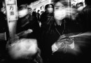 Tatsuo Suzuki è nato in Giappone nel 1965 ed è un fotografo, anche se prima del 2008 non aveva mai usato una macchina fotografica. Da allora Tatsuo si è dedicato a fotografare l’atmosfera frenetica di Tokyo, in bianco e nero, con immagini molto spesso a lunga esposizione e con un forte contrasto. I soggetti delle foto, giovani e anziani, e persone per strada, sulla metro, in attesa di un mezzo pubblico, mostrano insieme energia frenetica e stanchezza, circondate da un’attenzione particolare all’elemento della tecnologia e dei mezzi, appunto: in molte fotografie le persone sono concentrate sui loro telefoni, o incorniciate nei vagoni. Le altre foto di Tatsuo Suzuki si possono vedere sul suo sito.