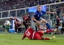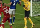 La nazionale italiana di calcio ha battuto ieri per 2-1 l’Azerbaigian nella seconda partita del girone di qualificazione degli Europei del 2016. La partita è stata per l’Italia più difficile del previsto: l’Azerbaigian si è difeso in maniera molto ordinata, e gli attaccanti e centrocampisti italiani sono stati spesso costretti a tirare in porta da molto lontano. La partita si è sbloccata al 43esimo del primo tempo con un colpo di testa di Giorgio Chiellini su calcio d’angolo. Si è poi messa male a meno di un quarto d’ora dalla fine quando un pasticcio difensivo di Chiellini e Buffon ha causato il pareggio dell’Azerbaigian (il gol è stato in realtà un autogol di Chiellini). Ancora Chiellini, poi, ha chiuso la partita segnando di testa all’82esimo, in seguito a un cross di Sebastian Giovinco. Lunedì l’Italia giocherà in trasferta contro Malta la terza partita del girone.