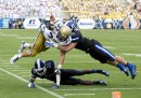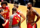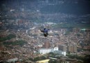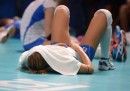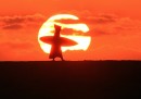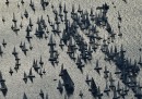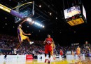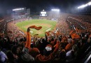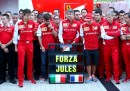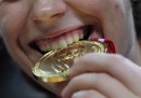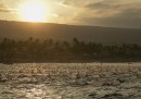 Nelle migliori foto sportive della settimana ci sono parecchie foto collettive: ce n’è una scattata a Baltimora, durante una partita di baseball, in cui i tifosi dei Baltimora Orioles compongono una specie di muro arancione sulle tribune dello Oriole Park. In un’altra, che arriva da Kailua, nelle Hawaii, sembra di vedere un tratto di mare invaso da una specie di banco di pesci che nuotano radenti la superficie: avvicinandosi, si vede invece che si tratta di persone, e precisamente dei partecipanti alla gara di Triathlon dell’Ironman. In un’altra foto collettiva, più triste, i membri dei team di Formula 1 della Ferrari e della Marussia ricordano il pilota Jules Bianchi prima del Gran Premio di Russia, a una settimana dal grave incidente in cui Bianchi si è procurato un danno cerebrale le cui conseguenze a lungo termine non sono ancora state chiarite.
