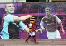 Fra le migliori foto sportive della settimana ce n’è una che mostra la grande curiosità dei tifosi del Levante mentre assistono alla partita della loro squadra di calcio, contro il Real Madrid, a pochi metri dalla porta del loro portiere (e sembra proprio che la foto sia stata scattata dal campo). Più attenzione che curiosità si intuisce dalla posa di Xabi Fernandez, membro dell’equipaggio dell’Abu Dhabi che partecipa alla Volvo Ocean Race: una regata di vela che si tiene ogni tre anni e si svolge nell’arco di nove mesi. Un misto delle due, più forse una certa preoccupazione, è evidente sul viso di Ettore Messina, che pochi giorni fa è diventato il primo italiano a condurre una squadra durante una partita fra squadre di NBA, con i San Antonio Spurs (Gregg Popovich, l’allenatore della squadra, era assente).