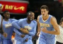 Quattro giocatori e un allenatore. La scorsa stagione Marco Belinelli, guardia dei San Antonio Spurs, è diventato il primo italiano a vincere un titolo NBA (e si è tatuato sul braccio sinistro la coppa). Belinelli – che in Italia ha giocato in entrambe le squadre di Bologna prima di essere scelto in NBA – arriva da una buona stagione giocata con gli Spurs: per diversi mesi è stato primo nella classifica dei migliori tiratori da tre del torneo e nel corso della stagione è riuscito a entrare nelle rotazioni dell’allenatore Popovich e ha mantenere un buon minutaggio e una buona media punti. L’altro italiano da cui ci si aspetta una buona stagione è Danilo Gallinari, ala dei Denver Nuggets che non gioca una partita ufficiale della NBA dall’aprile del 2013, a causa della rottura del legamento crociato anteriore del ginocchio sinistro. Gallinari è rientrato in questa preseason, giocando piuttosto bene. Il 10 ottobre scorso, per esempio, ha segnato 17 punti in 14 minuti contro i Phoenix Suns.