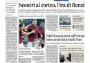 La notizia di apertura su tutti i giornali di oggi sono gli scontri di ieri a Roma durante una manifestazione degli operai delle acciaierie di Terni, che sono stati caricati dalla polizia che ha provocato quattro feriti. A questa notizia molti quotidiani associano la polemica fra il segretario generale della CGIL Camusso, che ha detto che il governo Renzi è espressione dei “poteri forti”, e la parlamentare europea del PD Pina Picierno, che ha risposto accusando Camusso di essere stata eletta grazie a tessere false della CGIL. I quotidiani sportivi titolano sui risultati del campionato di calcio, con l’aggancio della Roma alla Juventus in testa alla classifica.