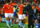 Il 9 giugno del 2008, nella prima partita del girone B degli Europei, van Basten schierò contro l’Italia una formazione molto offensiva: davanti, dal primo minuto, giocavano contemporaneamente Kuyt, Van der vaart, Sneijder e Van Nistelrooy. L’Olanda giocò benissimo e l’Italia subì una delle sconfitte più pesanti della storia degli Europei: perse tre a zero, subì due gol nei primi 31 minuti. A partire da quella partita, l’Olanda fu considerata da molti una delle favorite del torneo. Van Basten, a fine partita, disse che si era trattato di un «risultato storico». Dopo quella partita l’Olanda vinse facilmente contro Francia e Romania, segnando sei gol e subendone appena uno. Poi, però, perse ai quarti di finale contro la Russia, per 3-1, con due gol segnati nei tempi supplementari.