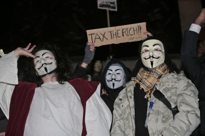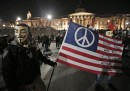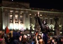 Mercoledì 5 novembre in diverse città del mondo si è tenuta la Million Mask March, una manifestazione organizzata dal gruppo Anonymous e ispirata dalla figura di Guy Fawkes, la cui maschera è diventata molto conosciuta e usata nelle proteste degli ultimi in diversi paesi. A Londra, la capitale del Regno Unito, hanno partecipato alla manifestazione migliaia di persone (tra cui il comico e attore Russell Brand): si sono ritrovate nella piazza del Parlamento e poi si sono dirette in gruppi più piccoli verso altri luoghi simbolici della città, come Buckingham Palace (la residenza ufficiale della regina) e gli studi di BBC. Alcuni manifestanti si sono scontrati con la polizia in tenuta antisommossa e almeno cinque persone sono state arrestate.