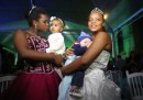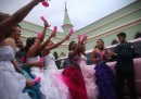 Giovedì 6 novembre 50 ragazze brasiliane della favela di Cerro-Cola, a Rio de Janeiro, hanno partecipato a un ballo delle debuttanti organizzato per loro dalla Unidade de Polícia Pacificadora (UPP), un’unità della polizia brasiliana che ha il compito di riprendere il controllo delle baraccopoli dominate dai narcotrafficanti. Il ballo si è tenuto nel castello neogotico di Ilha Fiscal e oltre a organizzare una serata gradevole per le ragazze – quasi tutte quindicenni – aveva soprattutto l’obiettivo di migliorare i rapporti tra gli abitanti della favela e le forze dell’ordine. Gruppi di volontari si sono occupati del trucco, delle acconciature e di noleggiare i lussuosi vestiti per le ragazze, che sono arrivate al castello su una limousine rosa e, dopo un brindisi, sono entrate accompagnate ognuna da un poliziotto.