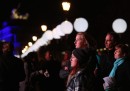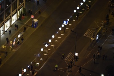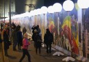 Circa 8mila palloncini, sistemati in fila lungo il perimetro originario del Muro, resteranno illuminati fino a domenica sera, quando saranno sganciati dai loro supporti e lasciati andare in cielo