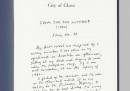 Il prossimo 2 dicembre la casa d’aste Christie’s batterà a New York un’asta di beneficenza intitolata “First Editions, Second Thoughts”, i cui proventi saranno devoluti in favore dell’organizzazione statunitense Pen American Center. Saranno vendute 75 copie originali e “uniche” di libri, stampati nella loro prima edizione americana, su cui i loro rispettivi autori hanno scritto a mano dei testi, degli appunti o delle illustrazioni. Si tratta, in quasi tutti i casi, di grandissimi successi di pubblico e di critica scritti da autori stranoti, in gran parte statunitensi, come Philip Roth, Paul Auster, Don De Lillo, Jennifer Egan, George Saunders, Woody Allen, ma anche artisti come Patti Smith e Yoko Ono. In pratica, Pen American Center ha chiesto a ciascuno di loro di annotare eventuali “ripensamenti”, o anche semplici considerazioni, riguardo quel libro. Alcuni hanno persino incluso dei piccoli oggetti da cui dicono di aver tratto ispirazione.