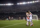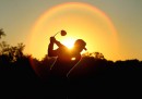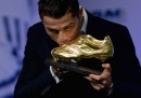 Tra le altre foto di momenti sportivi che, a pensarci, sono piuttosto curiosi, c’è quella di un calciatore che bacia una scarpa da calcio dorata: si tratta del portoghese Cristiano Ronaldo, che mercoledì scorso ha ricevuto a Madrid, in Spagna, la “Scarpa d’oro”. È un riconoscimento che viene dato ogni anno al giocatore che, durante la stagione calcistica passata, ha ottenuto il miglior punteggio calcolato moltiplicando il numero di gol segnati in campionato per il coefficiente di difficoltà di quel campionato. Ronaldo – che nella stagione 2013-2014 ha segnato 31 gol – si classificato al primo posto insieme all’argentino Luis Suarez.