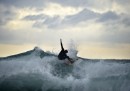 Alcune delle foto sportive più belle della settimana sono foto di surfisti ma non provengono dai posti del mondo in cui questa disciplina è largamente diffusa, come ad esempio negli Stati Uniti o in Portogallo. Sono state scattate in Italia, in Liguria, dal bravo fotografo francese Olivier Morin, che era nelle spiagge di Varazze e Andora, in provincia di Savona, durante i giorni in cui il mare era molto agitato a causa del vento e delle forti piogge. E ne sono uscite delle fotografie molto suggestive.